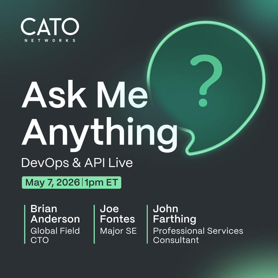 Hi, see subject. When trying to setup an ipsec site (IKEv2) in responder only mode and with destination type FQDN for primary and secondary tunnel, terraform (in fact opentofu), gives this error: │ Error: Cato API error in SiteAddIpsecIkeV2SiteTunnels │ │ with cato_ipsec_site.Vienna, │ on main.tf line 73, in resource "cato_ipsec_site" "Vienna": │ 73: resource "cato_ipsec_site" "Vienna" { │ │ {"networkErrors":{"code":422,"message":"Response body {\"errors\":[{\"message\":\"input: │ variable.updateIpsecIkeV2SiteTunnelsInput.primary.tunnels[0].tunnelId is not a valid │ IPSecV2InterfaceId\",\"path\":[\"variable\",\"updateIpsecIkeV2SiteTunnelsInput\",\"primary\",\"tunnels\",0,\"tunnelId\"]}],\"data\":null}"},"graphqlErrors":[{"message":"input: │ variable.updateIpsecIkeV2SiteTunnelsInput.primary.tunnels[0].tunnelId is not a valid │ IPSecV2InterfaceId","path":["variable","updateIpsecIkeV2SiteTunnelsInput","primary","tunnels",0,"tunnelId"]}]} ╵ That appears when adding the "tunnels" section. Without that section, a deployment if possible. Obviously, the tunnels section is required. --------------------snip-------------------- connection_mode = "RESPONDER_ONLY" identification_type = "IPV4" primary = { destination_type = "FQDN" tunnels = [ { public_site_ip = "10.10.10.10" psk = "abcABC1234567!!" //last_mile_bw = { //downstream = 10 //upstream = 10 } ] } ---------------snap------------------------------------- Is that supported with the terraform provider currently? Thanks, Christian172Views0likes4CommentsCato Connect Event: DevOps/API Live - May 2026