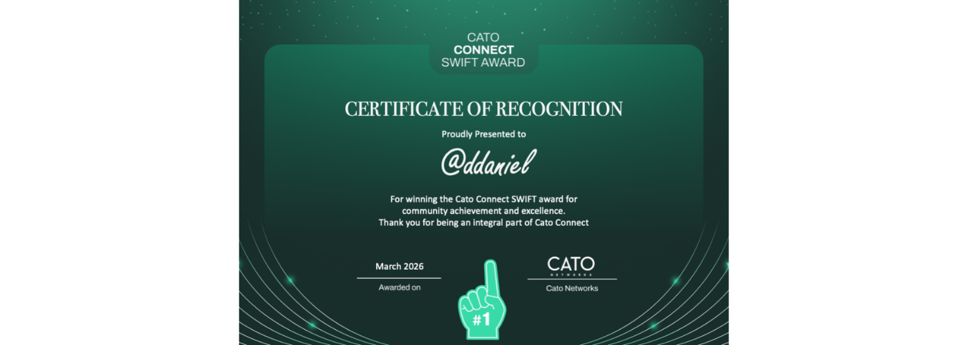 Congratulations to ddaniel for winning the Cato SWIFT award for community excellence and achievement for March 2026!