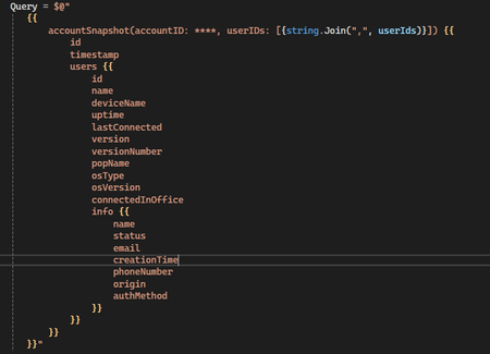 I am trying to retrieve a list of all users including their last connected datetime, which doesnt seem to be included in the results for entity lookup. I do get this field from accountSnapshot, but...