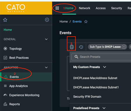 Imagine nightmare of memorizing your frequently used Event Types and Sub-Type fields to find the results you are looking for! Cato CMA Preset is synonymous to your saved event query on other managem...